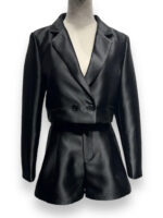 Švarko kirpimas trumpas, kas suteikia šiuolaikiško charakterio. Šortai turi aukštą liemenį, kuris pabrėžia moterišką siluetą.