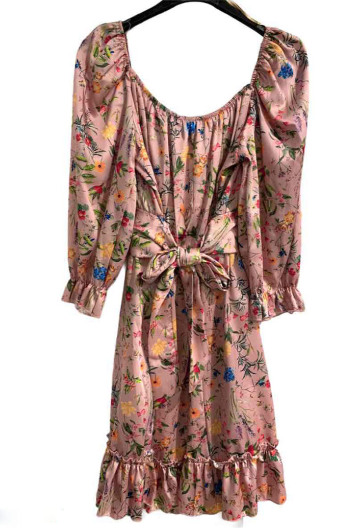 Suknelės ilgis 85 cm, rankovių ilgis 40 cm, krūtinė/liemuo/klubai – one size.